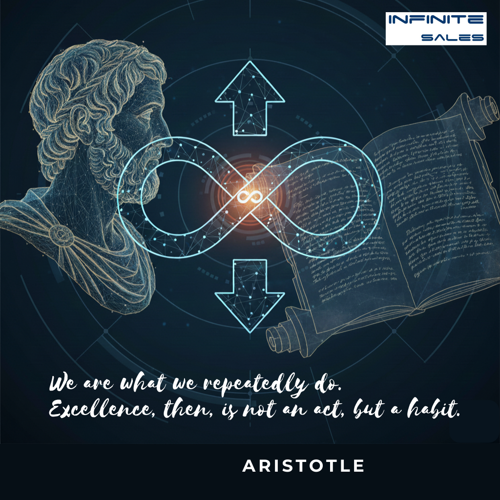 Infinite Sales® is built on a simple but demanding idea often attributed to Aristotle: “We are what we repeatedly do. Excellence, then, is not an act, but a habit.” Learning is only the beginning. What really changes results is the discipline to turn what we learn into habits, and to repeat those habits until excellence becomes the default. That means a lot of cycles. Infinite!